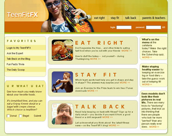 TeenFitFX is an online community being developed to help teenagers learn how to eat healthy, exercise and take care of their bodies. It is an ongoing project at Interactive Media Associates. This is an early design from the planning process. The site is in the first phase of design at the moment and is due to launch late this year.